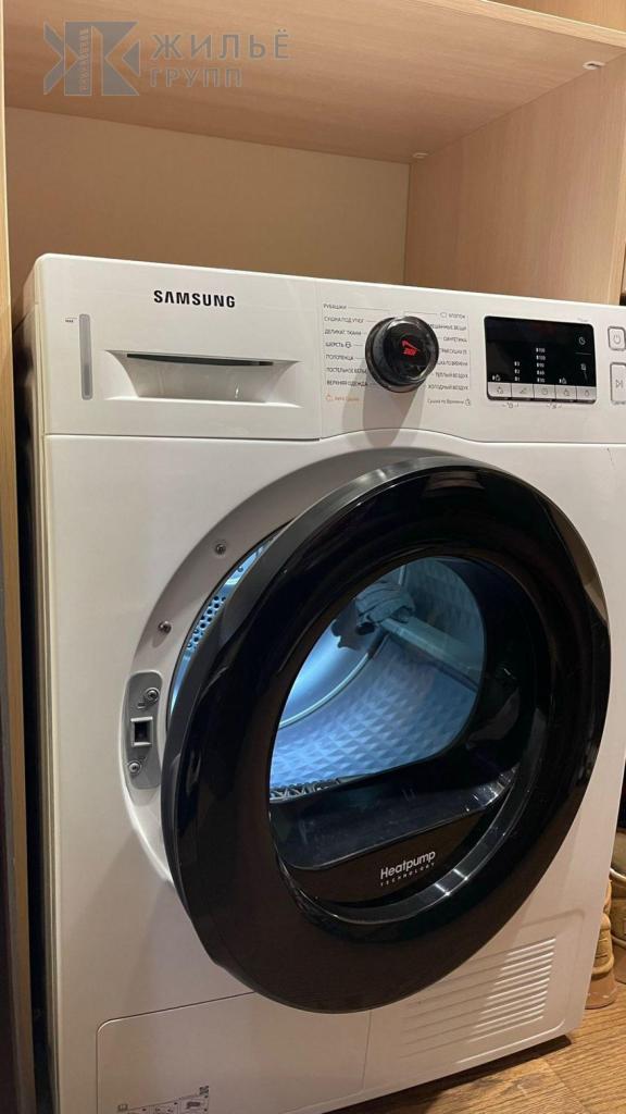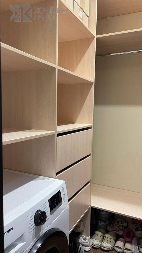 Отдельная гардеробная с сушильной машиной. Стены покрашены моющейся краской, ровные. Сантехника — Roca, мебель на заказ, техника — Samsung, Zanussi, LG, Bosch, Xiaomi.