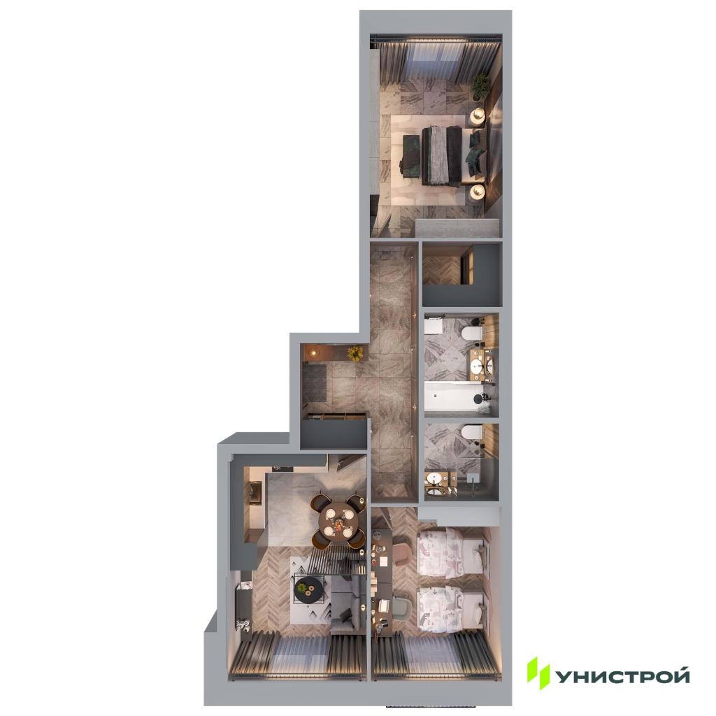 В «Статум» представлены двухуровневые квартиры, варианты со свободной планировкой и открытыми балконами. Также на выбор разнообразие планировок: от компактных до просторных квартир с зимними садами и террасами.