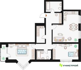 Продается 3комнатная квартира в ЖК Жилой кластер Q на Кулагина.