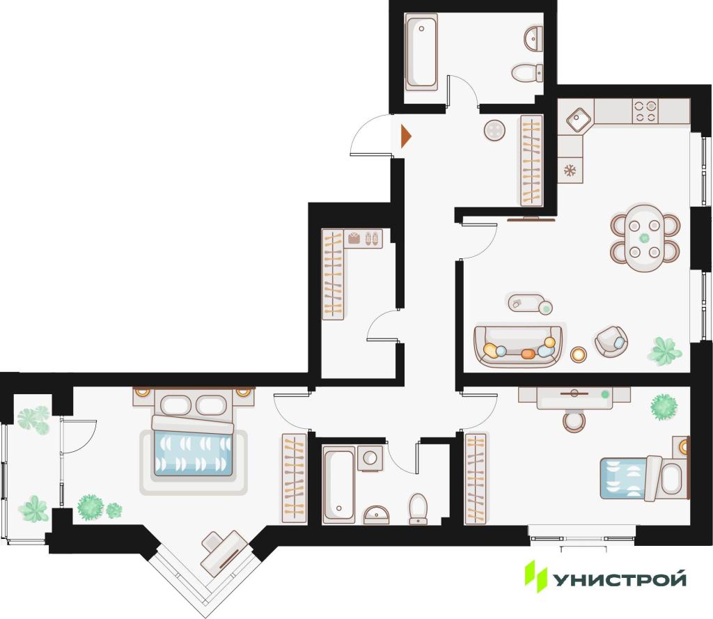 В «Q на Кулагина» предлагаются квартиры с террасами, евроварианты с просторными кухнями-гостиными, мастер-спальнями с ванными и гардеробными, тёплыми лоджиями и эркерами. На верхних этажах террасы позволяют любоваться видом на Волгу и Гребной канал.