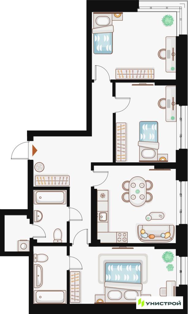 Продается 3комнатная квартира в ЖК Жилой кластер Q на Кулагина.