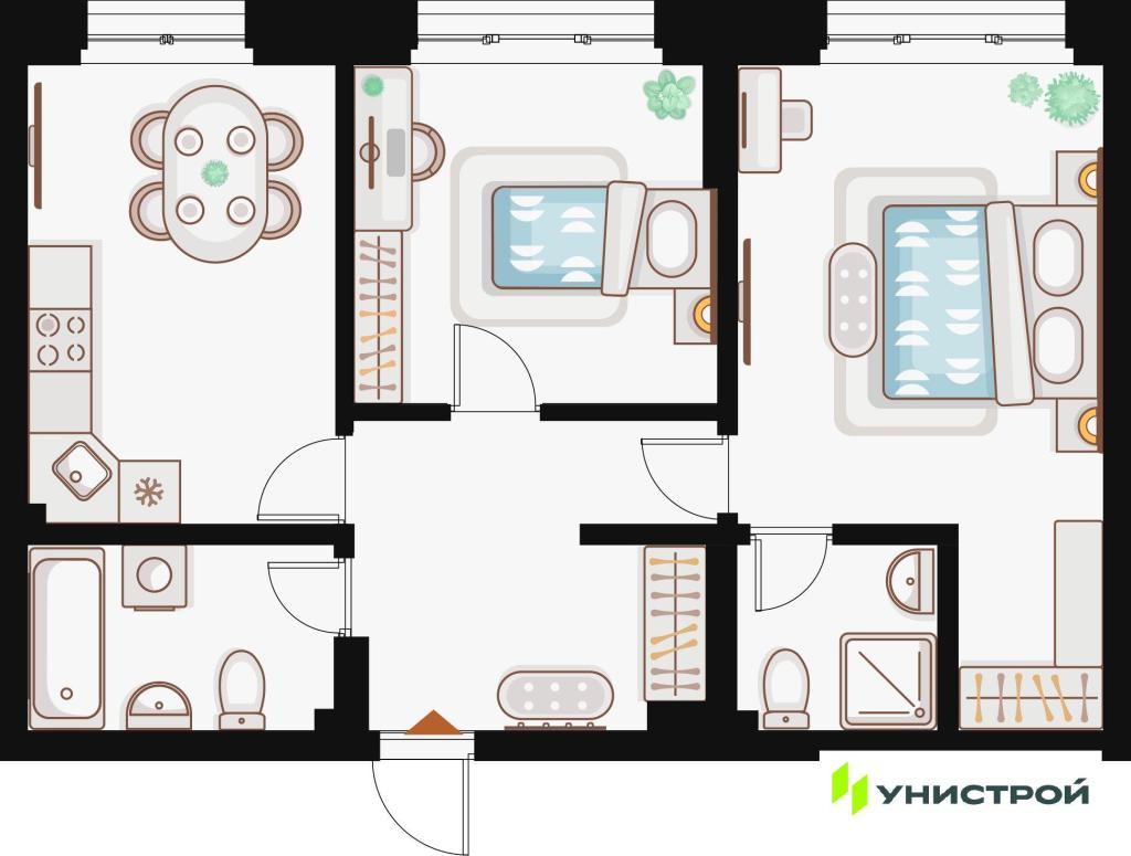 2-комн. Новостройки, Казань, Цена до 16 885 000, от 54 м2