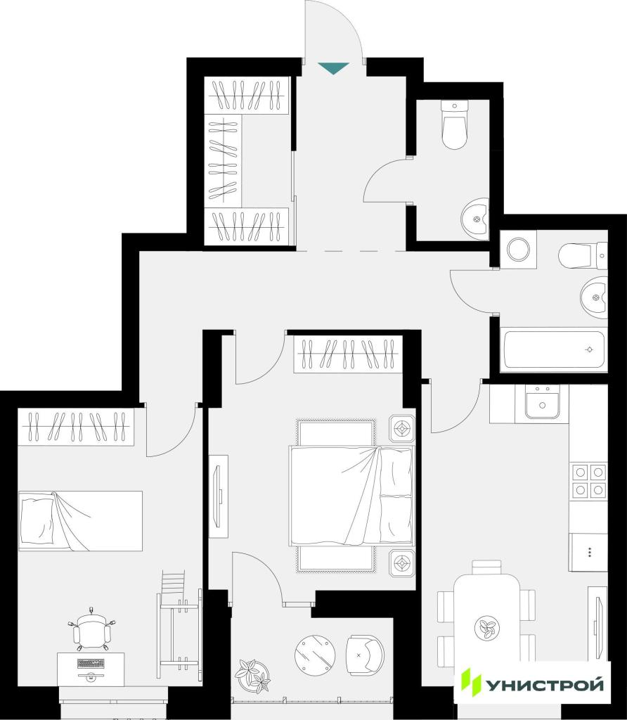 – Варианты от студий до 3-комнатных квартир
