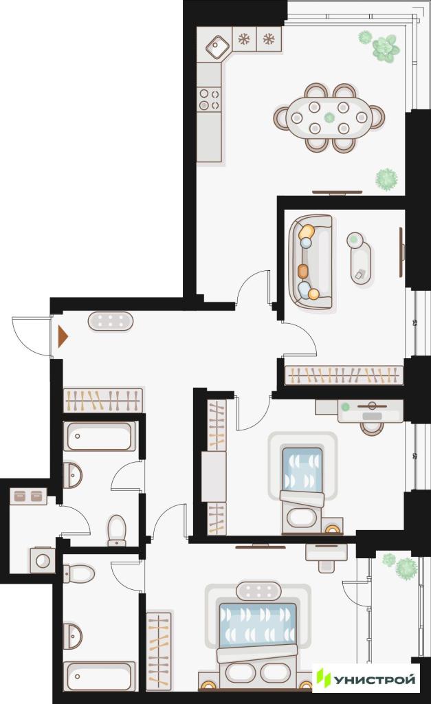 3-комн. Новостройки, Казань, Цена до 21 692 000, от 89 м2
