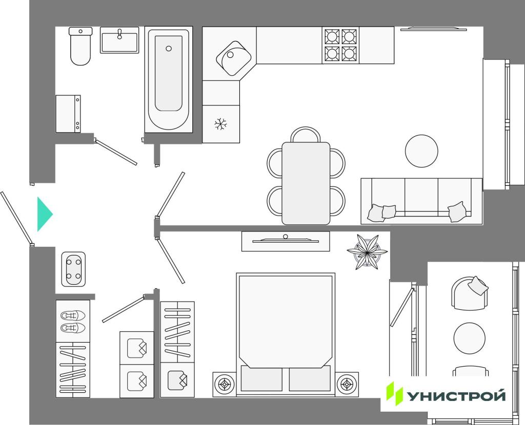 Представлен широкий выбор планировок — от студий до просторных семейных квартир. Доступны варианты с террасами, мастер-спальнями и гардеробными. Во всех квартирах выполнена качественная предчистовая отделка.
