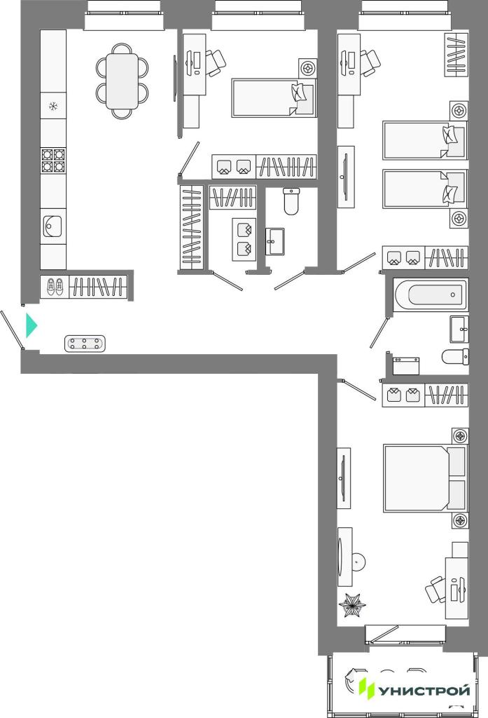 3-комн. Новостройки, Вахитовский, Цена до 21 873 500, от 77 м2