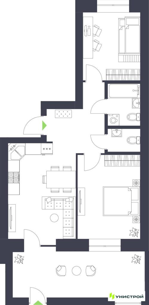 Бульвар, приватные дворы, комфортная переменная этажность, стильные холлы. В проекте представлено большое разнообразие планировочных решений: студии, европланировки и полноценные 1-, 2-, 3-комнатные. Для ценителей частных пространств мы подготовили миксы загородных домов и городских форматов: квартиры с личным входом с улицы, коллекционные варианты с террасами, а также мастер-спальни с ванными, гардеробными и эксклюзивные варианты на последних этажах с видом на зелёные окрестности района.