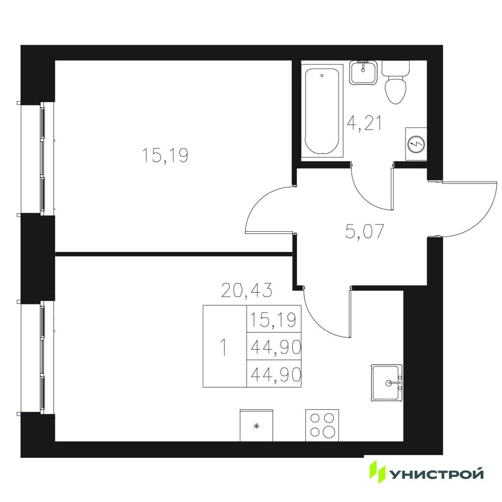 Цена 14 750 000 руб. /328 508 за м2