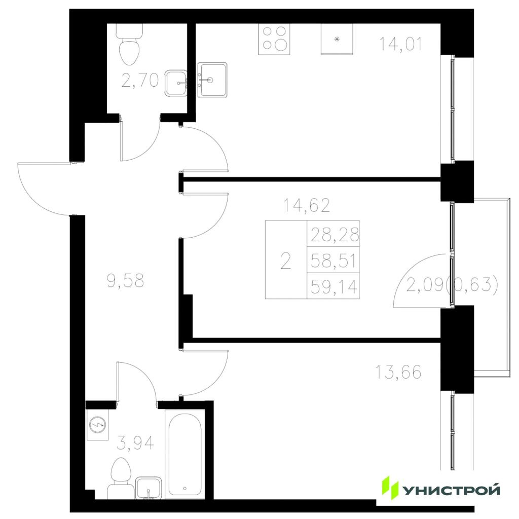 2-комн. Новостройки, Казань, Цена до 20 119 000, от 53 м2