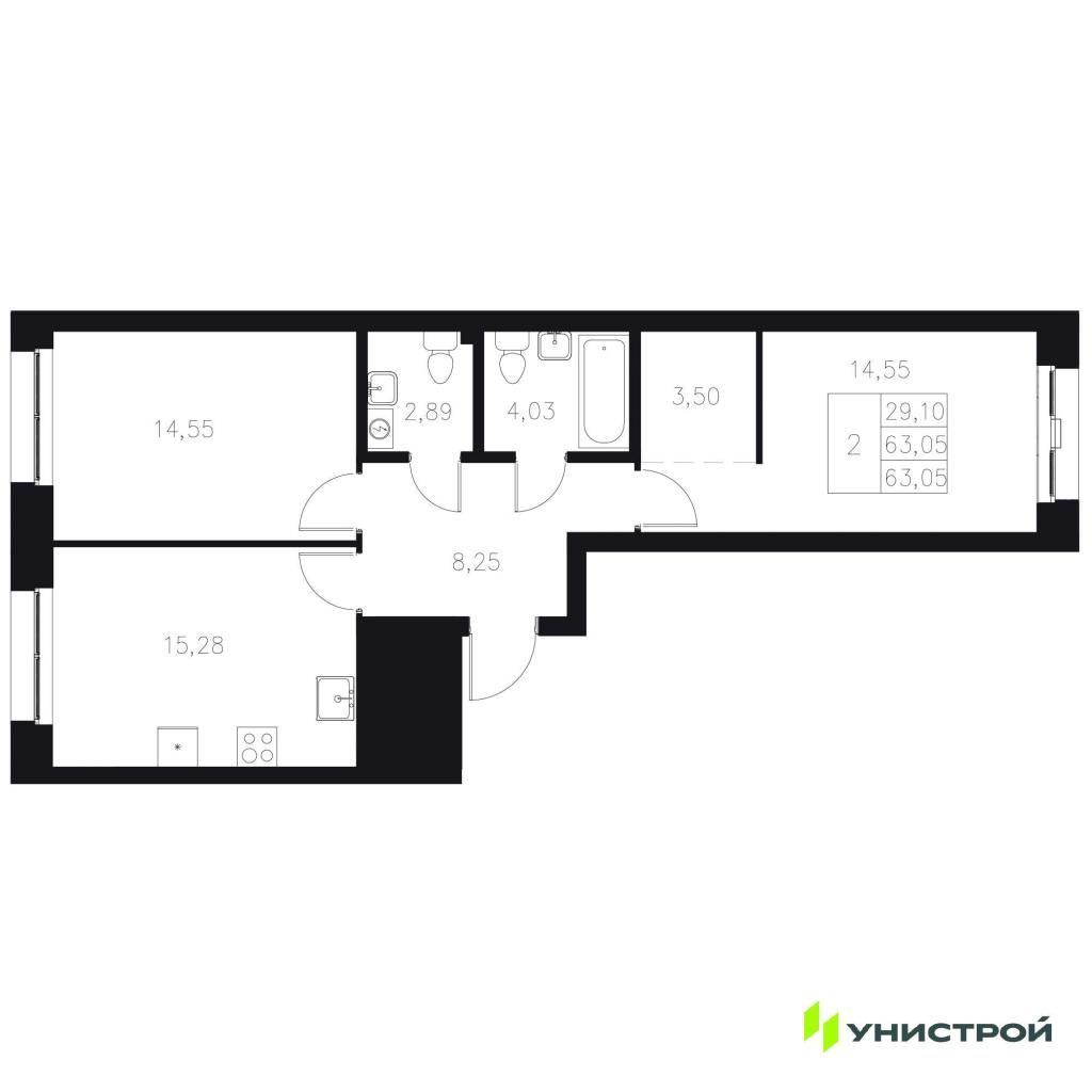 Цена 18 240 000 руб. /289 294 за м2