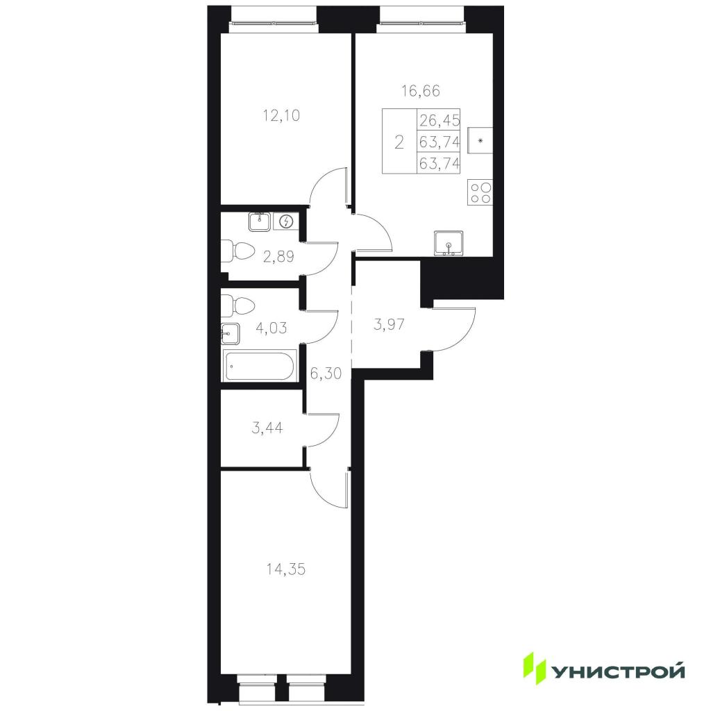 Цена 18 450 000 руб. /289 457 за м2
