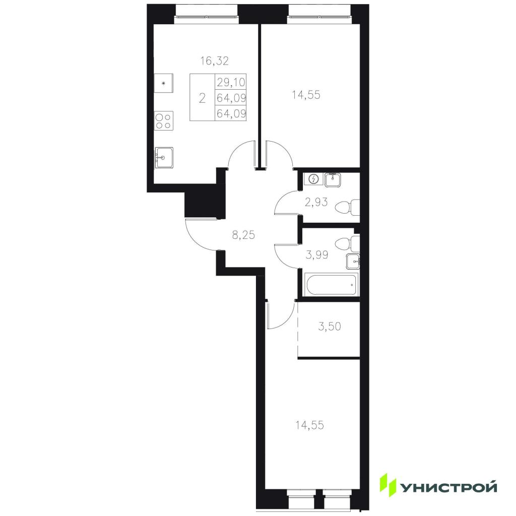 2-комн. Новостройки, Казань, Цена до 20 394 000, от 58 м2