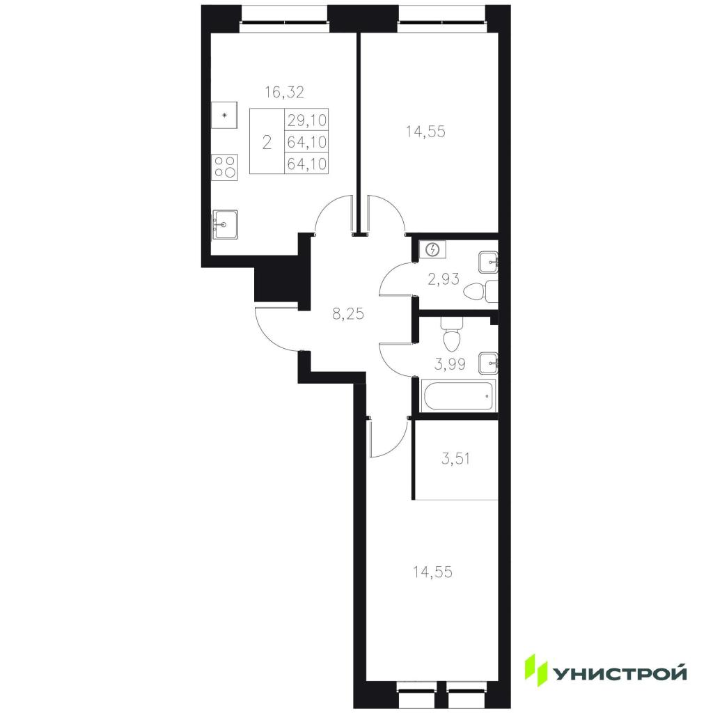 Цена 18 550 000 руб. /289 392 за м2
