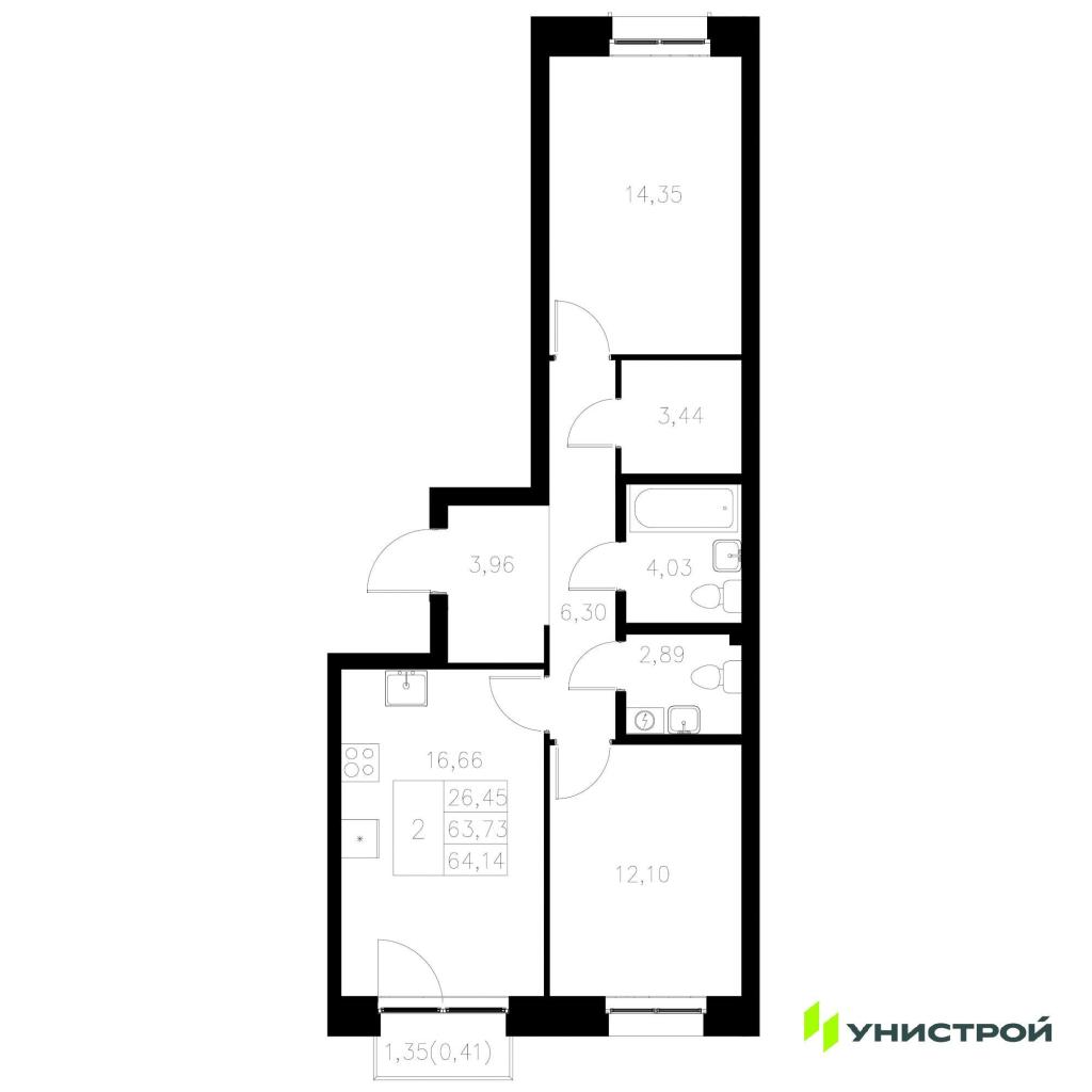 Продается 2 ком. квартира в новостройке: Казань, Адмиралтейская