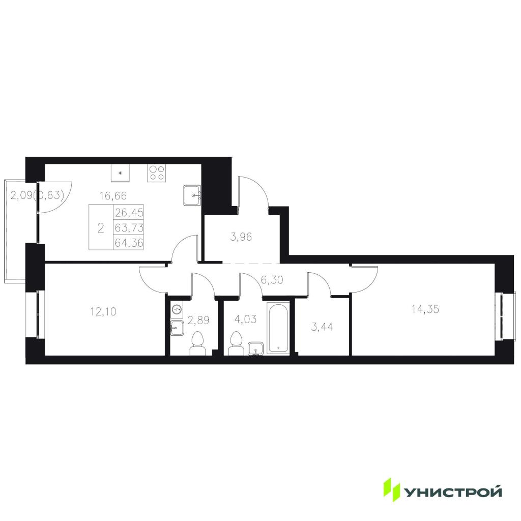 2-комн. Новостройки, Казань, Цена до 21 153 000, от 58 м2