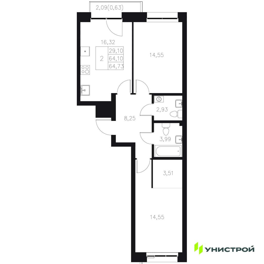 2-комн. Новостройки, Казань, Цена до 20 900 000, от 58 м2