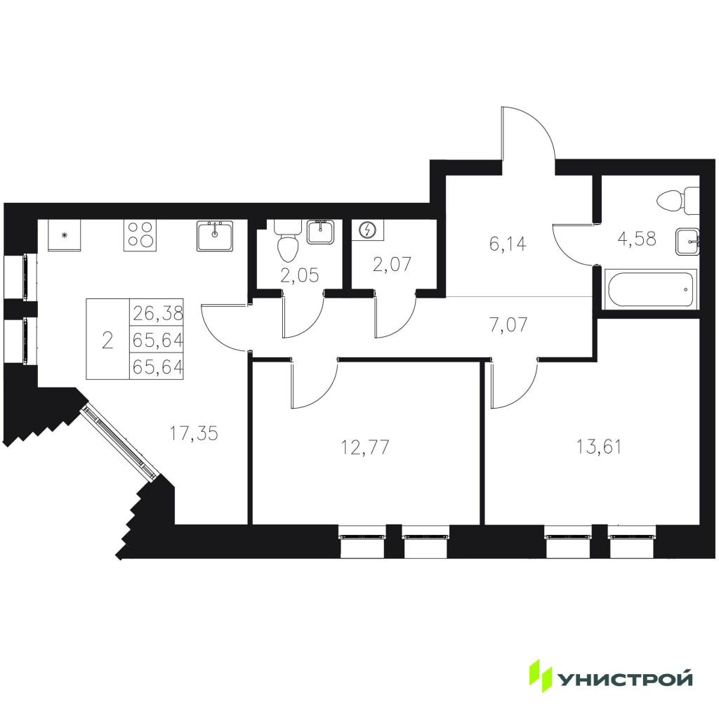 2-комн. Новостройки, Казань, Цена до 20 735 000, от 59 м2