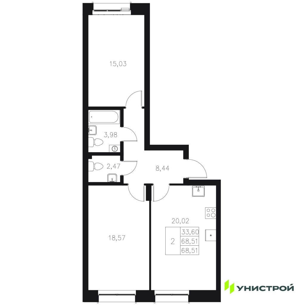 Продается 2комнатная квартира в ЖК Statum.